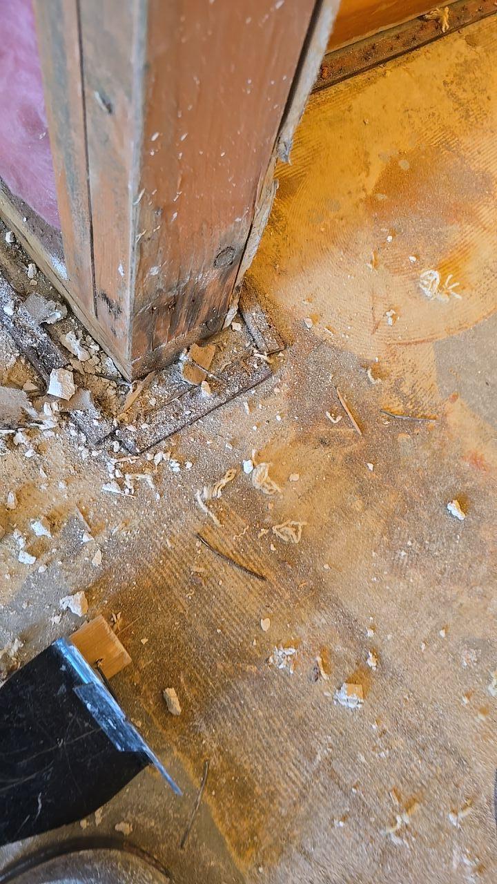 Detailed view of a structural subfloor being treated for biohazards. Our restoration process eliminates health risks at the source.