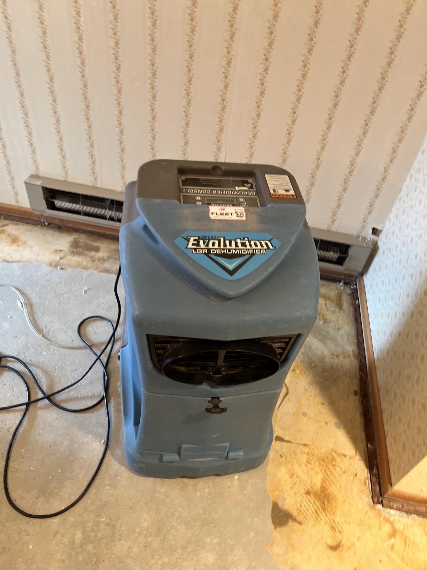 Advanced LGR dehumidifier in use to manage moisture levels after sewage cleanup, ensuring the property is stabilized and prepared for full restoration.