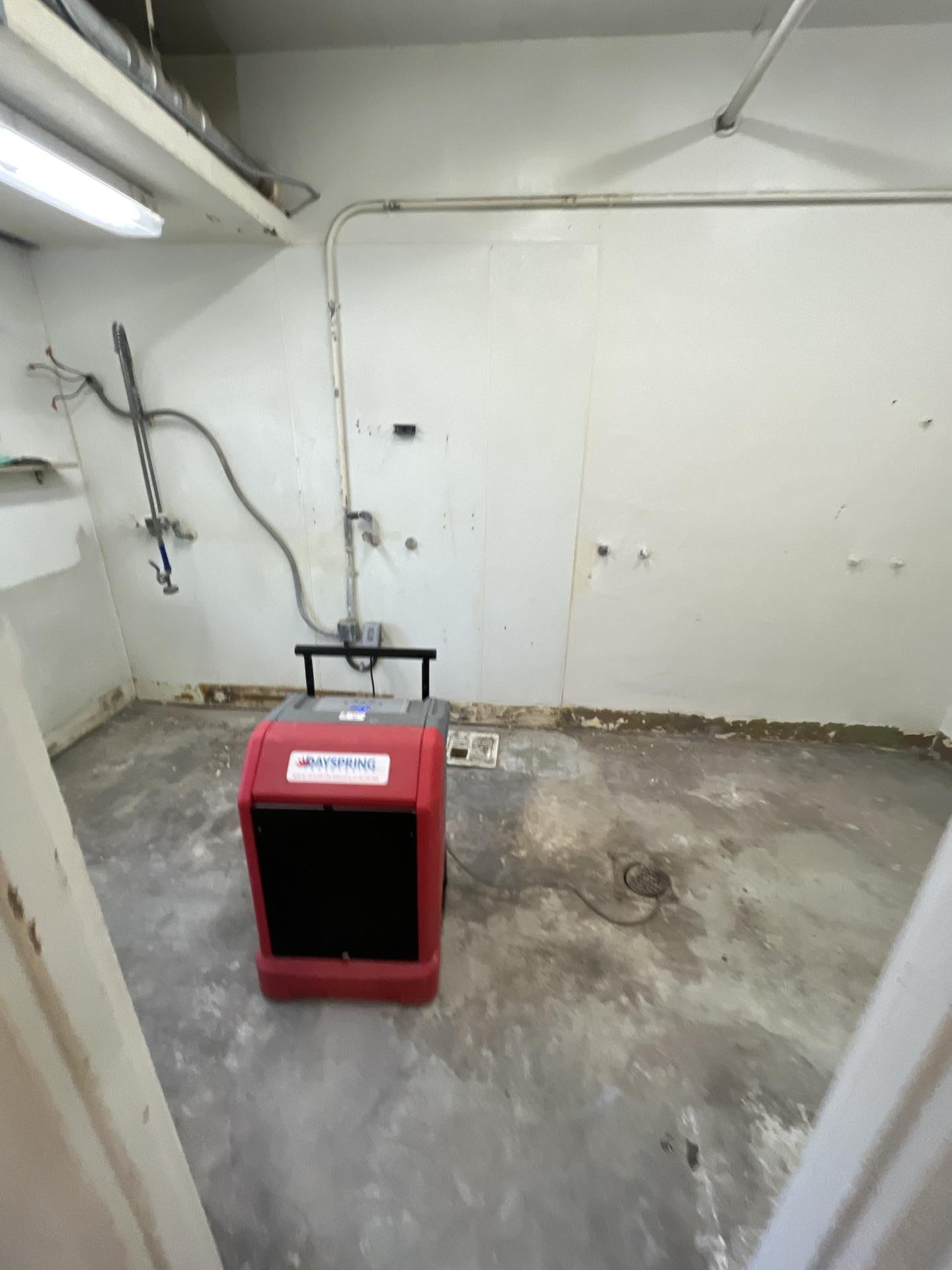 Water damage restoration services were provided, utilizing professional drying equipment such as air movers and dehumidifiers to mitigate moisture in affected areas, including the kitchen, gym, and bedroom. The process included setting up specialized equipment for water extraction and structural drying.