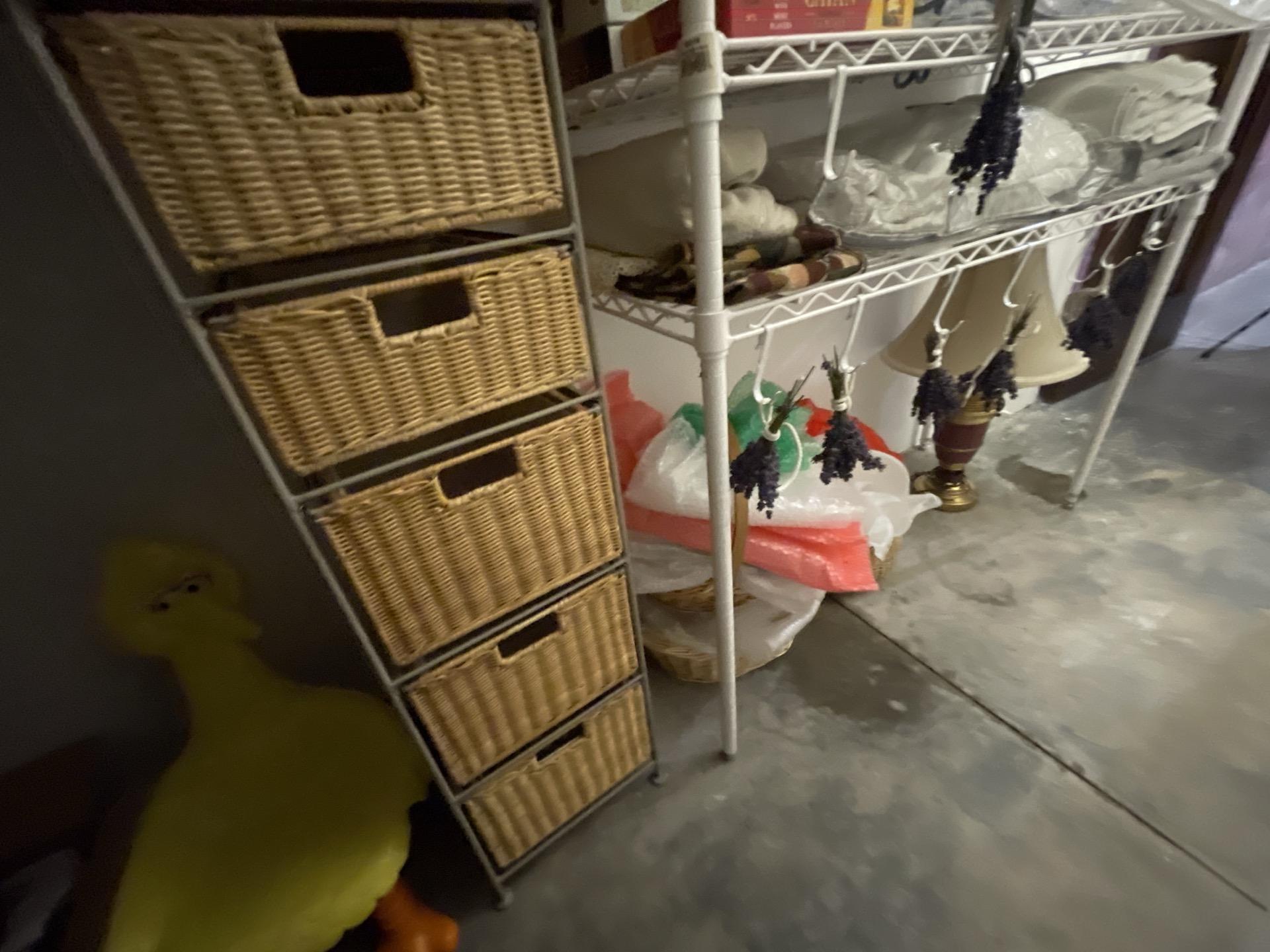 Basement storage area with shelving units, depicting the space after sewage cleanup, with organized items.