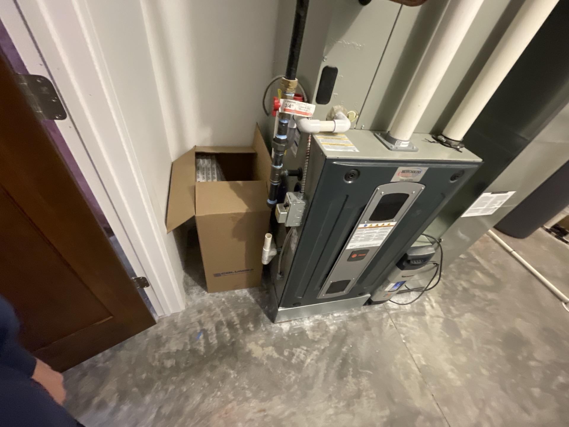 Basement furnace and utility area, potentially inspected during sewage service to ensure system integrity.