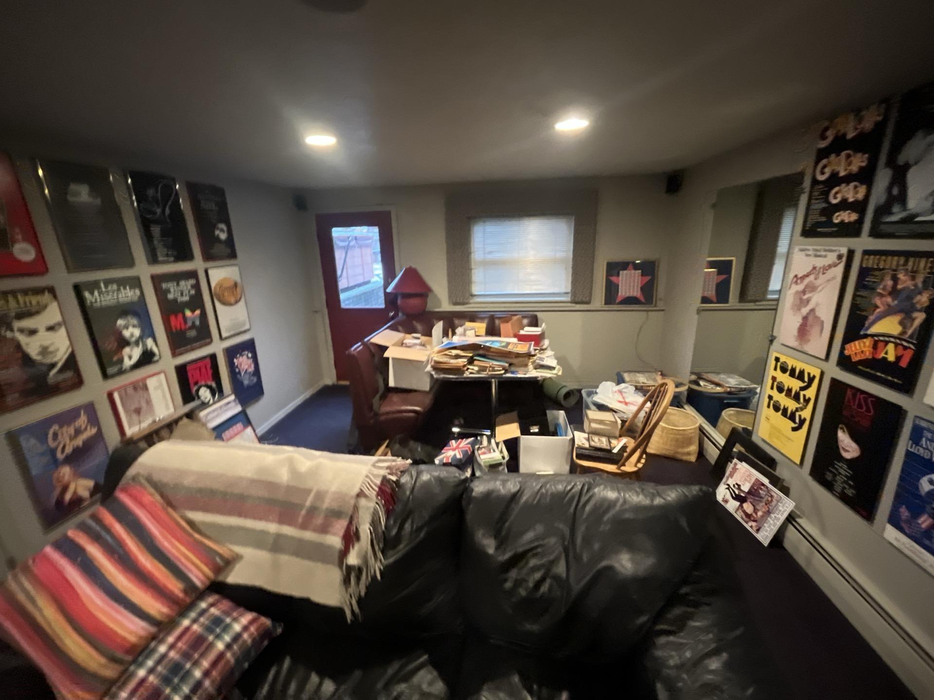 Basement family room, a large area impacted by sewage requiring extensive cleanup and restoration.