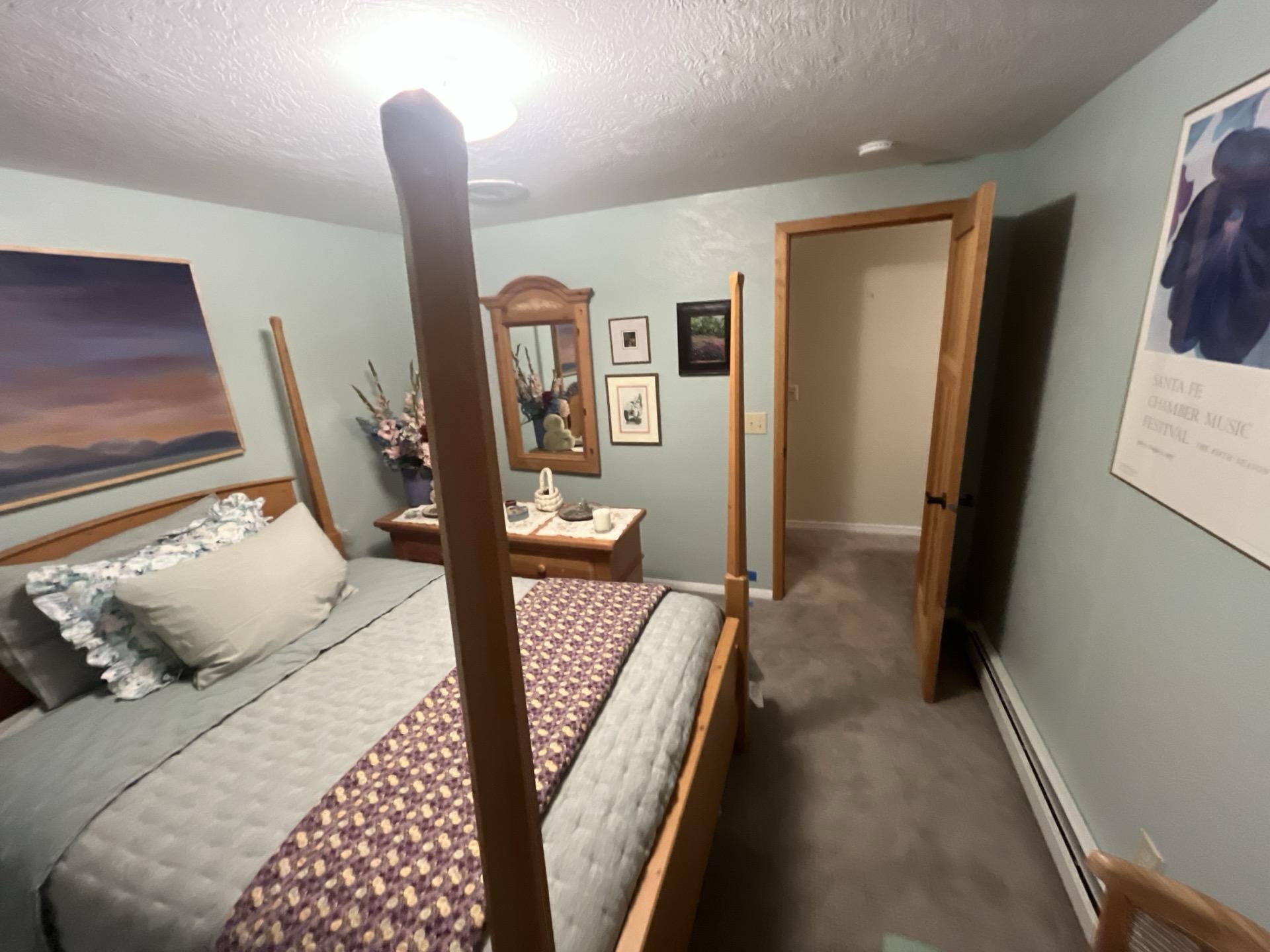 View of a basement bedroom (Bedroom 2) showing the area after sewage cleanup and restoration efforts