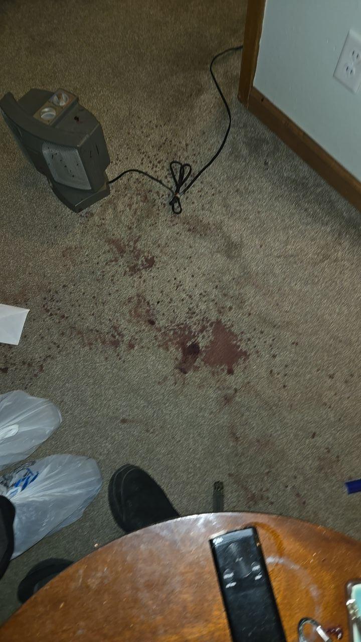 Dayspring Restoration provided comprehensive biohazard cleanup services. This included meticulous cleaning, disinfection, and sanitization of all affected hardwood floors to remove bloodstains and pathogens. For the carpeted areas, specialized cleaning techniques and professional-grade disinfectants were used to thoroughly clean and sanitize the carpet, ensuring complete removal of blood and any associated biological contaminants and odors. The property was restored to a safe and clean condition.